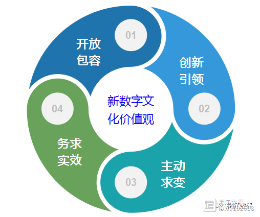 企业在数字化转型中应从价值观、行为准则等方面入手,建立与数字化能力相匹配的组织文化,把数字化转型战略愿景转变为组织全员主动创新的自觉行为。