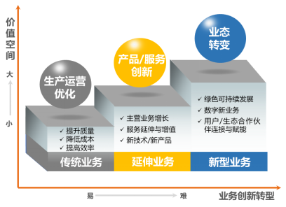 产品/服务创新类价值效益相应的业务体系仍然保持总体不大变,主要专注于拓展基于传统业务的延伸服务,价值创造和传递活动沿着产品/服务链延长价值链,开辟业务增量发展空间,价值获取主要来源于已有技术/产品体系的增量价值。产品/服务创新类价值效益主要包括新技术/新产品、服务延伸与增值、主营业务增长等方面。